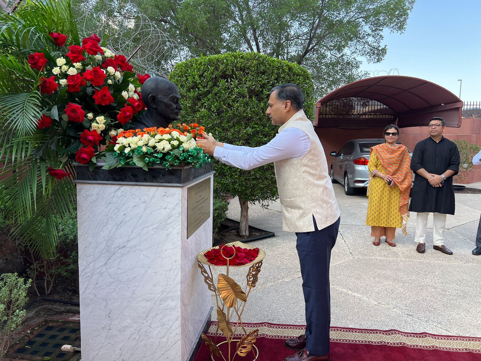 കുവൈത്ത് സിറ്റി: കുവൈത്തിലെ ഇന്ത്യൻ എംബസിയിൽ ഗാന്ധിജയന്തി ആഘോഷിച്ചു. ഇന്ത്യൻ സ്ഥാനപതി ഡോ. ആദർശ് സ്വൈക മഹാത്മാഗാന്ധിയുടെ പ്രതിമയിൽ പുഷ്പാർച്ചന നടത്തി. ചടങ്ങിൽ മറ്റ് എംബസി ഉദ്യോഗസ്ഥരും സന്നിഹിതരായിരുന്നു. സമാധാനം, സത്യം, അഹിംസ എന്നിവയെക്കുറിച്ചുള്ള ഗാന്ധിയുടെ ആശയങ്ങൾ നിലവിലെ സാഹചര്യത്തിലും വരും കാലങ്ങളിലും വളരെ പ്രസക്തമായി തുടരുന്നതായും അംബാസഡർ പറഞ്ഞു.