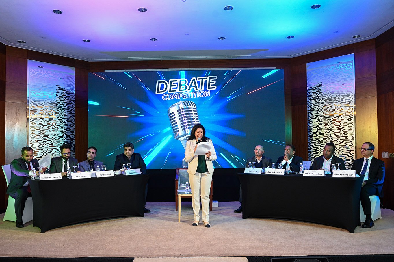 ‘വികേന്ദ്രീകരണമാണ് ഇന്ത്യയുടെ ദീർഘകാല വികസനത്തിൻ്റെ താക്കോൽ’ എന്ന വിഷയത്തെ ആസ്പദമാക്കി മിസ് ആൽക്കാ കുമ്രയുടെ മികവുറ്റ മോഡറേഷൻ കീഴിൽ രണ്ടുതീമുകൾ വാദത്തിനിറങ്ങി. അനുകൂല വാദ ടീമിൽ ശ്രീ. അനീസ് സൈഫ്, ദീപക് ബിന്ദൽ, കാർത്തിക് രമദോസ്, സുനിൽകുമാർ സിംഗ് എന്നിവർ തങ്ങളുടെ ശക്തമായ വാദങ്ങൾ അവതരിപ്പിച്ചു. പ്രതിപക്ഷ വാദ ടീം അംഗങ്ങൾ ശ്രീ. കേതൻ പുരി, കാഷിഫ് സൈദ്, കൃഷ്ണൻ സുര്യകാന്ത്, സാഹിൽ ചോപ്ര എന്നിവർ താക്കോൽപ്രാധാന്യമുള്ള കൃത്യമായ പ്രതികരണങ്ങൾ നൽകി.സംവാദ പരിപാടിയുടെ ചടുലത നിലനിർത്താൻ  വിക്രം ജോഷിയും  നായനാ സുരേഷും തികഞ്ഞ സമയനിയന്ത്രകരായി പ്രവർത്തിച്ചു.