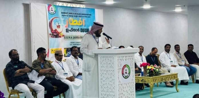 കുവൈറ്റ് സിറ്റി: കെ കെ എം എ ജഹറ ബ്രാഞ്ച് ഇഫ്താർ സംഗമം ജഹറ ഐ പി സി ഓഡിറ്റോറിയത്തിൽ നടന്നു .കേന്ദ്ര ആക്ടിങ് പ്രസിഡന്റ് കെ സി റഫീഖ് ഉദ് ഘാടനം ചെയ്തു. കെ കെ എം എ ജഹറ ബ്രാഞ്ച് പ്രസിഡന്റ് മുഹമ്മദ് കുട്ടി അധ്യക്ഷത വഹിച്ചു. ദീനിൽ അമലുകൾ ചെയ്യുമ്പോൾ പ്രവാചകചര്യ അനുസരിച്ചാകണമെന്നും പ്രവാചകചര്യക്ക് യോചിക്കാത്ത ഒരു കർമ്മവും അള്ളാഹു സ്വീകരിക്കുകയില്ലനും കുവൈറ്റി പണ്ഡിതൻ ഷെയ്ക്ക് അബ്ദുല്ല ആമിർ അൽ ആജ്മി സദസ്സിനെ ഉത്ബോധിപ്പിച്ചു. റമദാന്റെ പ്രാധാന്യവും അവസാന പത്തിന്റെ സുവർണ്ണാവസരവും പരമാവധി പ്രയോജനപ്പെടുത്തി സൽകർമ്മങ്ങൾ കൂടുതൽ വർധിപ്പിക്കുവാൻ മുഖ്യ പ്രഭാഷണം നിർവഹിച്ച ഉസ്മാൻ ദാരിമി അടിവാരം സദസ്സിനെ ഓർമ്മിപ്പിച്ചു . സിറാജിന്റെ ഖുർആൻ പാരായണത്തോടെ ആരംഭിച്ച പരിപാടിയിൽ റഫീഖ് കെ വി സ്വാഗതം പറഞ്ഞു . കുവൈറ്റ് ഐ പി സി പ്രതിനിധികളായ ശൈഖ് അഹമ്മദ് ജമീൽ അൽഷമ്മരി, ഫറാസ് ജാഹദ് അൽഷമ്മരി, ശൈഖ് നളീം, കേന്ദ്ര നേതാക്കളായ ബി എം ഇക്ബാൽ, അബ്ദുൽ ഗഫൂർ എച് എ, ശറഫുദ്ധീൻ ഓ പി, മുഹമ്മദ് അലി കടിഞ്ഞിമൂല, സോണൽ നേതാക്കന്മാരായ അബ്ദുല്ലത്തീഫ് ശാദിയ, അബ്ദുറസാഖ്, കമറുദ്ധീൻ, മജീദ് കെ സി തുടങ്ങി വിവിധ സോൺ , ബ്രാഞ്ച് ഭാരവാഹികളും സന്നിഹിതരായിരുന്നു. ബ്രാഞ്ച് നേതാക്കന്മാരായ അബ്ദുല്ല ഫൈസി, ആരിഫ്, മമ്മൂട്ടി പട്ടാമ്പി, മുഹമ്മദ് ഇഖ്ബാൽ, ഹക്കീം. സിറാജ് , ഫഹദ്, സുബൈർ , നവാസ്, ഗഫൂർ , നൗഷാദ് തുടങ്ങിയവർ പരിപാടിക്ക് നേതൃത്വം നൽകി.