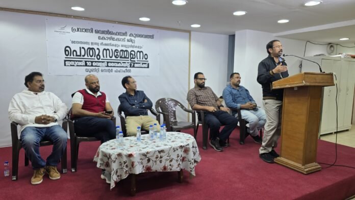 കുവൈറ്റ് സിറ്റി : പ്രവാസി വെൽഫെയർ കുവൈത്ത് കോഴിക്കോട് ജില്ല മതേതരത്വ ഇന്ത്യ ഭീഷണിയും വെല്ലു വിളികളും എന്ന വിഷയത്തിൽ ഫഹാഹീൽ യൂണിറ്റി സെന്ററിൽ വെച്ച് ചർച്ചയും പൊതുസമ്മേളനവും സംഘടിപ്പിച്ചു. ജില്ലാ പ്രസിഡന്റ് റഷീദ്ഖാൻ അധ്യക്ഷത വഹിച്ച പരിപാടി കേന്ദ്ര പ്രസിഡന്റ് ലായിക് അഹമ്മദ് ഉദ്ഘാടനം ചെയ്തു.കേന്ദ്ര വെെസ് പ്രസിഡന്റ് റഫീഖ് ബാബു പൊന്മുണ്ടം വിഷയാവതരണം നടത്തി. കേന്ദ്ര വൈസ് പ്രസിഡന്റ് അനിയൻ കുഞ്ഞു , ജില്ലാ കമ്മറ്റി അംഗം നാസർ മടപ്പള്ളി, അബ്ദുൽ അസീസ് മാട്ടുവായിൽ തുടങ്ങിയവർ ചർച്ചയിൽ പങ്കെടുത്തു സംസാരിച്ചു. അന്തരിച്ച പ്രശസ്ത എഴുത്തുകാരൻ എം ടി വാസുദേവൻ നായർക്കും ഗായകൻ ശ്രീ ജയചന്ദ്രനും പരിപാടിയിൽ ആദരാഞ്ജലികൾ അർപ്പിച്ചു. ജയചന്ദ്രന്റെ ഗാനം ആലപിച്ചു തുടങ്ങിയ ഗാന സന്ധ്യയിൽ ഗഫൂർ എംകെ തൃത്താല, ഹാരിസ് കൊട്ടേക്കാട്, അസീസ്, അൻവർ തോട്ടത്തിൽ, റംഷീദ് കൊക്കിണി പറമ്പ്, റഫീഖ് ചാപ്പായിൽ എന്നിവർ ഗാനങ്ങൾ ആലപിച്ചു. ഷംസുദ്ദീൻ പാലാഴി സ്വാഗതവും നാസർ മർജാൻ കൊയിലാണ്ടി നന്ദിയും പറഞ്ഞു.