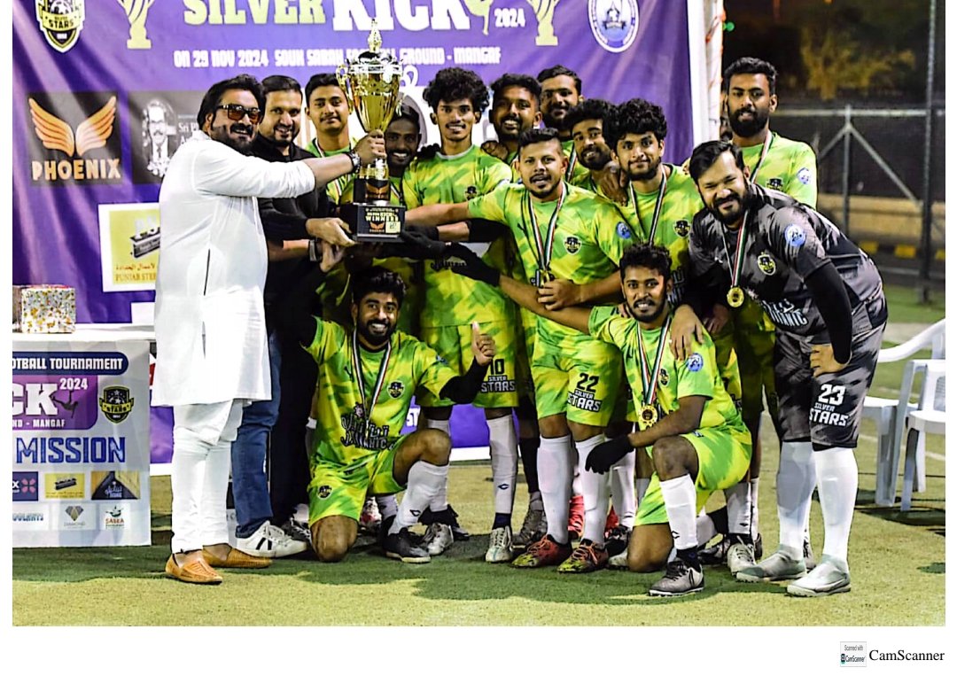 കുവൈത്ത് സിറ്റി: കുവൈറ്റിലെ പ്രമുഖ ഫുട്ബോൾ ടീമായ സിൽവർ സ്റ്റാർ സ്പോർട്ടിങ് ക്ലബ്ബ് കേഫാക്കിന്റ കീഴിൽ നടത്തിയ അഞ്ചാമത് സെവൻ എ സൈഡ് ടൂർണമെന്റ് ട്രോഫി സിൽവർ സ്റ്റാർ തന്നെ നേടിയെടുത്തു ചരിത്രം കുറിച്ചു . യങ് ഷൂട്ടേർസ് അബ്ബാസിയയെ പെനാൽറ്റി ഷൂട്ട് ഔട്ടിലൂടെ 3-2 ന് പരാജയപ്പെടുത്തി കൊണ്ടാണ് ട്രോഫി നേടിയത് . കേഫാക്കിന്റെ കീഴിൽ 15 പ്രമുഖ ടീമുകൾ പങ്കെടുത്ത വാശിയേറിയ മത്സരത്തിൽ 3ാ൦ സ്ഥാനം ബിഗ് ബോയ്സ് എഫ് സി കരസ്ഥമാക്കി . ചാമ്പ്യൻ ടീം ആയ സിൽവർസ്റ്ററിന് ട്രോഫി സ്പോൺസർ സായി അപ്പുക്കുട്ടനും, ക്യാഷ് പ്രൈസ് കേഫാക് സെക്രട്ടറി മൻസൂർ കുന്നത്തേരി, റണ്ണേഴ്സ്അപ്പ് ആയ YSA ടീമിനെ സ്പോൺസർ സുർജിത് കുമാർ പഞ്ചാബ് സ്റ്റീൽസ്, പ്രൈസ് മണി കേഫാക് ട്രഷറർ ലതീഫ് ഇസ്മായിൽ കൈമാറി, 3 സ്ഥാനം ബിഗ് ബോയ്സ് ടീമിനെ സായി അപ്പുക്കുട്ടനും 4 സ്ഥാനം കരസ്ഥമാകിയ സിയസ്കോ ടീമിന്റെ ട്രോഫി സ്പോൺസർ ബേസിൽ അൻസാരി ഗ്രൂപ്പും കൈമാറി, ടൂർണമെന്റ് സെമിഫൈനൽ, മാൻ ഓഫ് മാച്ച്, സിൽവർസ്റ്റാറിന്റെ ശ്യാം, young ഷൂട്ടേഴ്സ്ന്റ ഫൈസൽ, ഫൈനൽ മാൻ ഓഫ് മാച്ച്, സിൽവർസ്റ്റാറിന്റ നമീർ കരസ്തമാക്കി, ടൂർണമെന്റ് ബെസ്റ്റ് പ്ലയെർ, സിൽവർസ്റ്റാറിന്റ നിതിൻ, ബെസ്റ്റ് കീപ്പർ YSA ഫൈസൽ, ബെസ്റ്റ് ഡിഫണ്ടർ ശുഹുദ് YSA, ടോപ് സ്കോർർ സിൽവർസ്റ്റാറിന്റെ ശ്യാം, എമെർജിങ് പ്ലയെർ ബിഗ് ബോയ്സിന്റെ മയിൻ കരസ്തമാക്കി, ടൂർണമെന്റ് കുറച്ച് സിൽവർസ്റ്റാർ പ്രസിഡന്റ് ശംസുദ്ദിൻ അടക്കാനിയും, കേഫാക് സെക്രട്ടറി മൻസൂർ കുന്നത്തേരിയും, ടൂർണമെന്റ് നടത്തിപ്പിനെ സഹായിച്ച സ്പോൺസർമാരയും, കേഫാക് ഭാരവാഹികൾ,സിൽവർസ്റ്റാറിന്റ ട്രെഷരാർ പ്രജീഷ് നന്ദി പറഞ്ഞു.