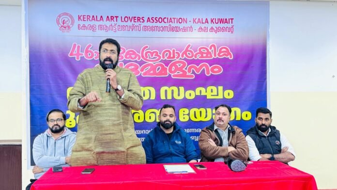 കുവൈത്ത് സിറ്റി: കേരള ആർട്ട്‌ ലവേഴ്‌സ് അസോസിയേഷൻ കല കുവൈറ്റ്‌ 46-ാമത് കേന്ദ്ര വാർഷിക സമ്മേളനം ജനുവരി 24 വെള്ളിയാഴ്ച സഖാവ് സീതാറാം യെച്ചൂരി നഗറിൽ (സെൻട്രൽ സ്കൂൾ അബ്ബാസിയ )നടക്കും. സമ്മേളനത്തിന്റെ വിജയകരമായ നടത്തിപ്പിനായി സ്വാഗതസംഘം രൂപീകരിച്ചു, യുണൈറ്റഡ് ഇന്ത്യൻ സ്കൂൾ അബ്ബാസിയയിൽ കല കുവൈറ്റ്‌ പ്രസിഡന്റ് അനുപ് മങ്ങാട്ടിന്റെ അധ്യക്ഷതയിൽ നടന്ന യോഗത്തിൽ കല കുവൈറ്റ്‌ ജനറൽ സെക്രട്ടറി സജി തോമസ് മാത്യു സമ്മേളനത്തിന്റെ നടത്തിപ്പിനെ കുറിച്ച് വിശദീകരണം നൽകി തുടർന്ന് അംഗങ്ങളുടെ നിർദ്ദേശങ്ങൾക്ക് ശേഷം കേന്ദ്ര വാർഷിക സമ്മേളനത്തിന്റെ സ്വാഗത സംഘം ചെയർമാനായി സണ്ണി സൈലേഷിനേയും ജനറൽ കൺവീനറായി സജി തോമസ് മാത്യുവിനേയും വിവിധ സബ് കമ്മിറ്റി ചുമതലക്കാരെയും യോഗം തിരഞ്ഞെടുത്തു.കല കുവൈറ്റ്‌ ജോയിൻ സെക്രട്ടറി ബിജോയ്‌ സ്വാഗതം ആശംസിച്ച ചടങ്ങിന് സ്വാഗത സംഘം ചെയർമാൻ സണ്ണി സൈലേഷ് നന്ദി പറഞ്ഞു.
