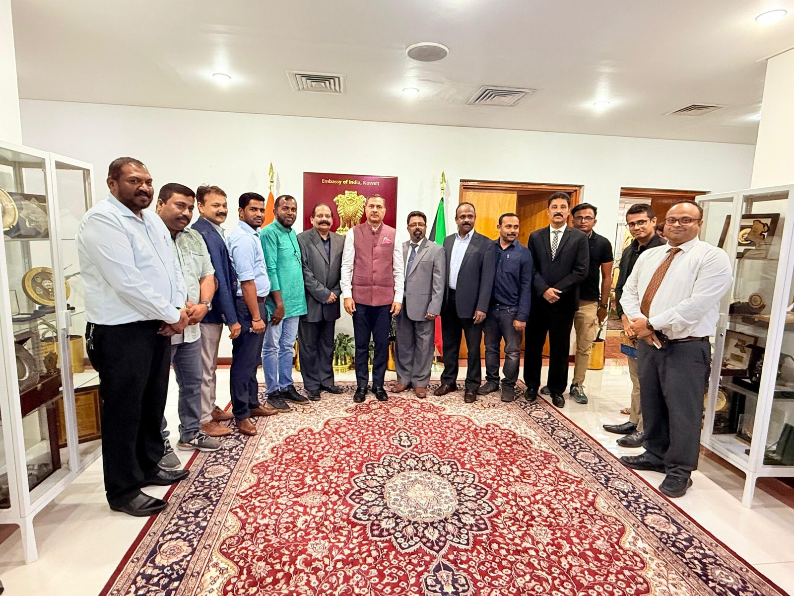 കുവൈറ്റ് സിറ്റി : കുടയുടെ നേതൃത്വത്തിൽ ഇന്ത്യൻ സ്ഥാനപതി ഡോ. ആദർശ് സ്വൈകയെ നേരിൽ കണ്ട് ജില്ലാ അസോസിയേഷനുകളുടെ ആശങ്കകൾ പങ്കുവെച്ചു. കുവൈത്തിലെ സമകാലിക സംഭവങ്ങളെയും, ജനങ്ങൾക്ക് ഉപകാരപ്രദമാകേണ്ട പ്രവർത്തനങ്ങളെപ്പറ്റി ചർച്ചചെയ്തു. മരണപ്പെടുന്ന വ്യക്തികളുടെ ഭൗദീക ശരീരങ്ങൾ നാട്ടിലെക്ക് കൊണ്ട് പോകുന്ന ചിലവുകളിൽ എംബസി കാര്യമായി ഇടപെടണമെന്നും BLS ന്റെ പ്രവർത്തനം കൂടുതൽ ജനകീയമാക്കുന്നതിനുവേണ്ടിയുള്ള നടപടികൾ സ്വീകരിക്കണമെന്നും അഭ്യർത്ഥിച്ചു. കുടയുമായി എംബസിയുടെ ബന്ധം ഊർജിതപ്പെടുത്താം എന്നും സ്ഥാനപതി ഉറപ്പ് തന്നു. ഇന്ത്യൻ ജനതയുടെ ആഘോഷങ്ങൾ നടത്തുന്നതിനുള്ള അനുവാദം ലഭിക്കുന്നതിനുവേണ്ടി കാര്യമായ ഇടപെടലുകൾ നടത്താമെന്നും എംബസി അധികൃതർ അറിയിച്ചു. കൊല്ലം ജില്ല പ്രവാസി അസോസിയേഷൻ പ്രതിനിധി യും കുടയുടെ ജനറൽ കൺവീനറുമായ അലക്സ് പുത്തൂർ, കാസർഗോഡ് ജില്ലാ അസോസിയേഷൻ ജ.സെക്രട്ടറി യും കുടയുടെ കൺവീനറുമായ ഹമീദ് മധൂർ, എന്നിവർക്കു പുറമെ, പ്രേംരാജ് (PALPAK), കുര്യൻ തോമസ് (AJPAK), ഡോജി മാത്യു (KODPAK), ജിയാഷ് അബ്ദുൽ കരീം (TEXAS), മെനിഷ് വാസ് (KWA), സാബു ജോസ് (FOKE), രാധാകൃഷ്ണൻ (TRAK) ജോബിൻ ജോസഫ് (IAK), ബഷീർ ബാത്ത (KDNA) എന്നിവർ സന്നിഹിതരായിരുന്നു.
