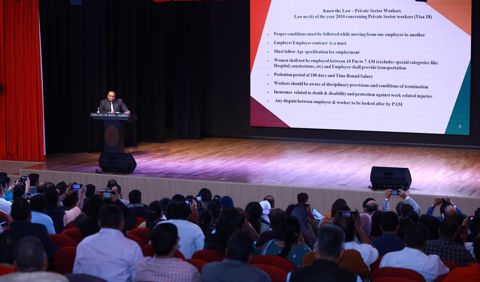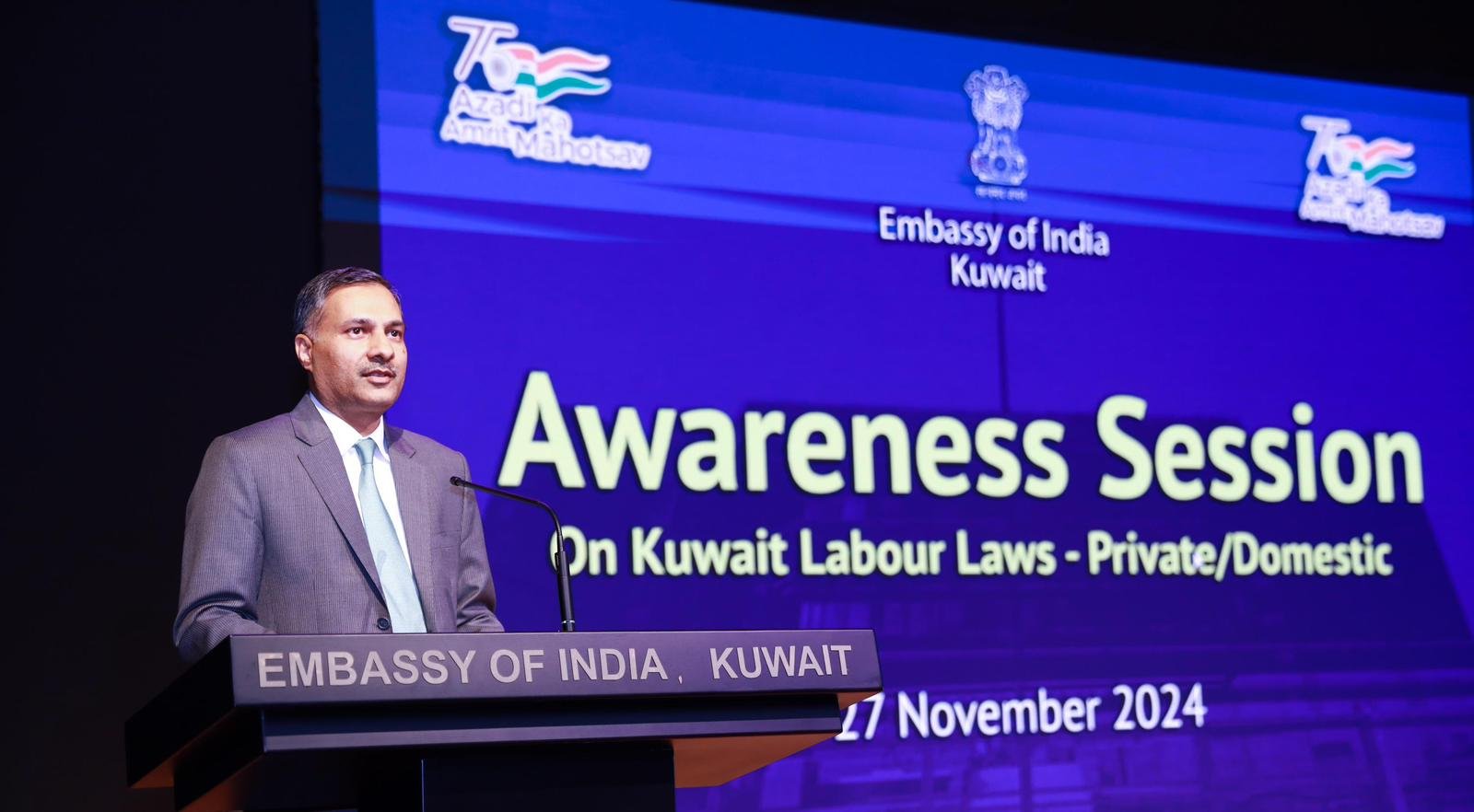 കുവൈത്ത് സിറ്റി: സ്വകാര്യ, ഗാർഹിക മേഖലയുമായി ബന്ധപ്പെട്ട കുവൈറ്റ് തൊഴിൽ നിയമങ്ങളെക്കുറിച്ച് ഇന്ത്യൻ കമ്മ്യൂണിറ്റി അംഗങ്ങളുടെ പ്രതിനിധികൾക്കായി ബോധവത്കരണ സെഷൻ സംഘടിപ്പിച്ച് ഇന്ത്യൻ എംബസി.