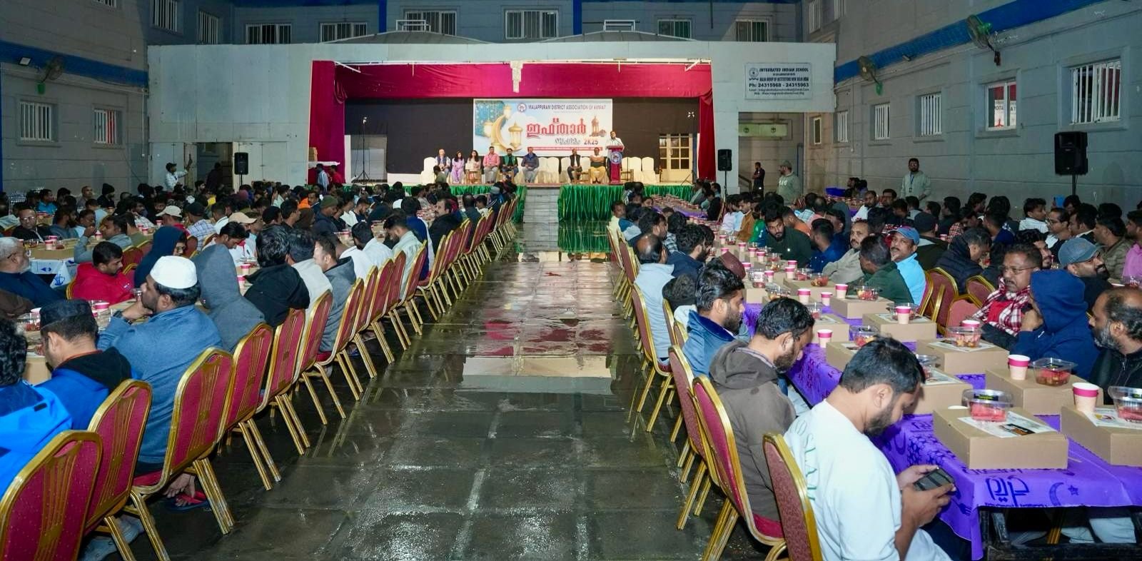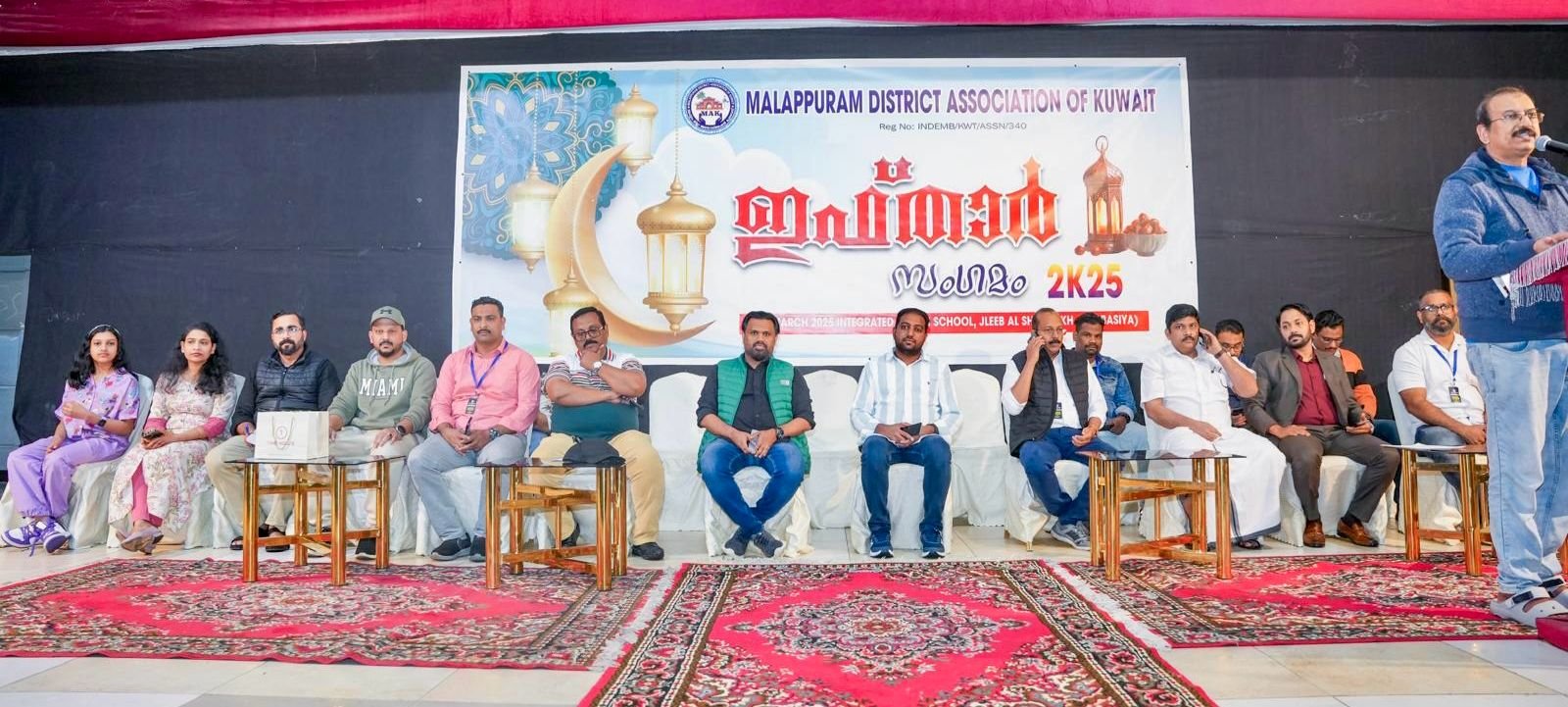 കുവൈറ്റ് സിറ്റി: മലപ്പുറം ജില്ലാ അസോസിയേഷൻ കുവൈറ്റ് ഇന്റഗ്രേറ്റഡ് ഇന്ത്യൻ സ്കൂൾ ഓപ്പൺ ഓഡിറ്റോറിയത്തിൽ സംഘടിപ്പിച്ച ഇഫ്താർ സംഗമം ജനബാഹുല്യത്താൽ ശ്രദ്ധേയമായി.അസോസിയേഷൻ പ്രസിഡന്റ് അഡ്വ. മുഹമ്മദ് ബഷീർ അധ്യക്ഷത വഹിച്ച ചടങ്ങ്, കുട കൺവീനർ സക്കീർ പുതുനഗരം ഉദ്ഘാടനം ചെയ്തു. റമദാൻ സന്ദേശവുമായി ഇസ്മയിൽ വള്ളിയോത്ത് സംസാരിച്ചു. ക്വാളിറ്റി ഫുഡ് സ്റ്റഫ് ചെയർമാൻ മുസ്തഫ ഉണ്ണിയാലുക്കൽ, ഫിനിക്സ് ഗ്രൂപ്പ് ഓഫ് കമ്പനീസ് തലവൻ സുനിൽ പാറകപ്പാടത്ത്, മെഡക്സ് ചെയർമാൻ വി.പി. മുഹമ്മദലി, രക്ഷാധികാരികളായ ഷറഫുദ്ദീൻ കണ്ണേത്ത്, വസുദേവൻ മമ്പാട്, ലേഡീസ് വിംഗ് ചെയർപേഴ്സൺ അനു അഭിലാഷ്, മാകിഡ്സ് ചെയർപേഴ്സൺ ദീത്യ സുദീപ് എന്നിവർ ആശംസകൾ നേർന്നു.