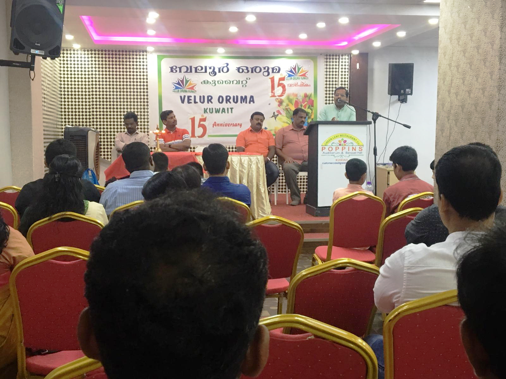 തൃശൂർ ജില്ലയിലെ വേലൂർ സ്വദേശികളുടെ കൂട്ടായ്മയായ “വേലൂർ ഒരുമ യുടെ” 15- മത് വാർഷിക പരിപാടികൾ അബ്ബാസ്സിയ പോപ്പിൻസ് ഹാളിൽ വെച്ചു വെള്ളിയാഴ്ച വൈകിട്ട് നടന്നു.