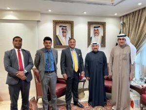 കുവൈത്ത് സിറ്റി: കുവൈത്തിലെ ഇന്ത്യൻ അംബാസഡർ സിബി ജോർജ്ജ് കോൺസുലേറ്റ് കാര്യങ്ങളുടെ അസിസ്റ്റന്റ് വിദേശകാര്യ മന്ത്രി മിഷാഅൽ ഇബ്രാഹിം അൽ മൊദാഫുമായി കൂടിക്കാഴ്ച നടത്തി. സെപ്റ്റംബറിൽ നടന്ന മാൻപവർ JWG അവലോകനം ചെയ്തു. ഇന്ത്യൻ നഴ്സുമാരുടെ റിക്രൂട്ട്മെന്റ്, ഗാർഹിക തൊഴിലാളി റിക്രൂട്ട്മെൻറ് മായി ബന്ധപ്പെട്ട ധാരണാപത്രം, കൊവാക്സിൻ, പ്രവാസി വിഷയങ്ങളും ചർച്ച ചെയ്തു.