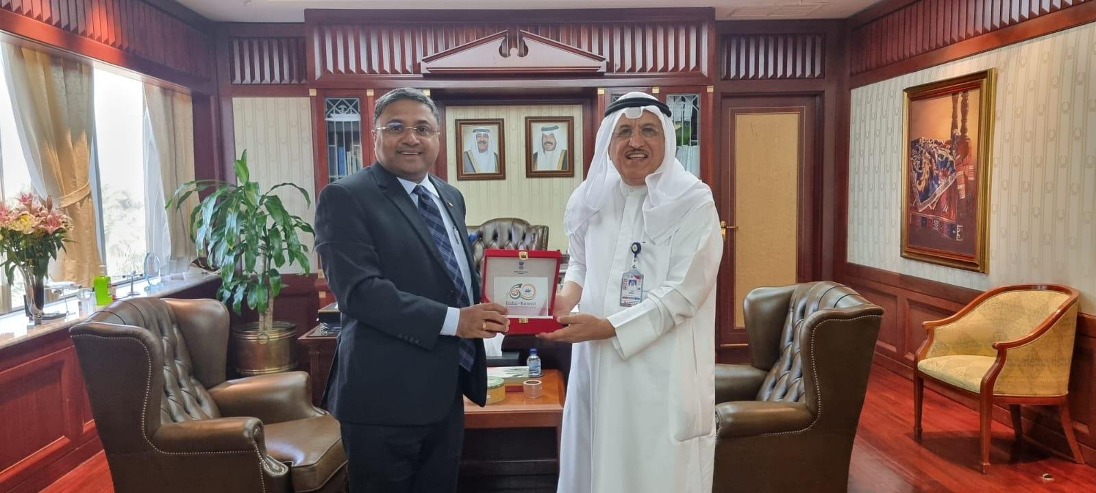 കുവൈത്ത് സിറ്റി: കുവൈത്തിലെ ഇന്ത്യൻ അംബാസിഡർ സിബി ജോർജ് കുവൈത്ത് എയർവേയ്സ് കോർപ്പറേഷൻ ചെയർമാൻ അലി എം അൽദുഖാനുമായി കൂടിക്കാഴ്ച നടത്തി. ഇരു രാജ്യങ്ങളും തമ്മിലുള്ള ഉഭയകക്ഷി ബന്ധം, സിവിൽ ഏവിയേഷൻ മേഖലയിലെ ഉഭയകക്ഷി സഹകരണം വർധിപ്പിക്കൽ, പ്രവാസികളുമായി ബന്ധപ്പെട്ട മറ്റ് വിഷയങ്ങൾ  എന്നിവ  ചർച്ച ചെയ്തു.