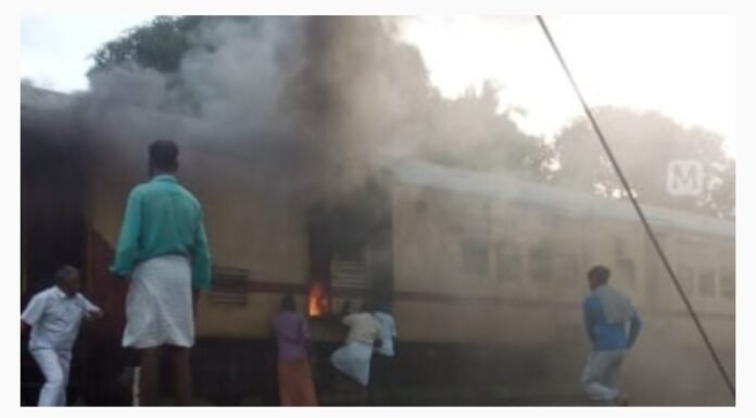തിരുവനന്തപുരം : മംഗലാപുരം-തിരുവനന്തപുരം മലബാര് എക്സ്പ്രസിൽ തീപിടുത്തം ഉണ്ടായത്. ട്രെയിനിലെ ലഗേജ് വാനിലാണ് തീപിടിത്തം. വര്ക്കലക്ക് സമീപം വച്ചായിരുന്നു സംഭവം. തീയും പുകയും ശ്രദ്ധയിൽപെട്ട യാത്രക്കാർ ചെയിന് വലിച്ച് വണ്ടി നിര്ത്തുകയായിരുന്നു. നാട്ടുകാരും അഗ്നിശമന സേനയും ചേര്ന്നാണ് തീ അണച്ചു. സംഭവത്തിൽ ആർക്കും പരിക്കേറ്റിട്ടില്ല. തീപിടിച്ച ബോഗി മറ്റു കോച്ചുകളില് നിന്ന് വേഗത്തില് മാറ്റിയത് മൂലം വൻ ദുരന്തമാണ് ഒഴിവായത്. തീയണച്ചതിനുശേഷം ട്രെയിൻ വീണ്ടും യാത്രയാരംഭിച്ചു.