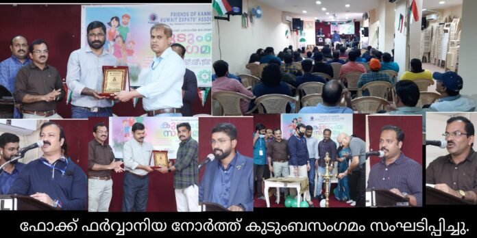 ഫ്രണ്ട്സ് ഓഫ് കണ്ണൂർ കുവൈത്ത് എക്സ്പാറ്റ്സ് അസോസിയേഷൻ (ഫോക്ക്) ഫർവ്വാനിയ നോർത്ത് യൂണിറ്റ്, അംഗങ്ങൾക്കായി ഫെബ്രുവരി 26 ശനിയാഴ്ച്ച വൈകുന്നേരം 4 മണി മുതൽ 10 മണി വരെ ഫർവ്വാനിയ ഐഡിയൽ ഹാളിൽ വെച്ച് കുടുംബസംഗമം സംഘടിപ്പിച്ചു.യൂണിറ്റ് അംഗങ്ങളുടെയും കുട്ടികളുടെയും വൈവിധ്യമാർന്ന കലാപരിപാടികൾ, രസകരമായ മത്സരങ്ങൾ എന്നിവയ്ക്കൊപ്പം വിദ്യാഭ്യാസ, കലാ, കായിക മേഖലയിൽ മികച്ച നേട്ടം കൈവരിച്ച യൂണിറ്റ് അംഗങ്ങൾക്കും കുട്ടികൾക്കുമുള്ള ഉപഹാര സമർപ്പണവും നടന്നു. പ്രവാസ ജീവിതം മതിയാക്കി നാട്ടിലേക്ക് മടങ്ങുന്ന ഫർവാനിയ നോർത്ത് യൂണിറ്റ് ട്രഷറർ സുജിത്ത് പി.വി, യൂണിറ്റ് അംഗം രാജീവൻ എന്നിവർക്കുള്ള യാത്രയയപ്പും തദവസരത്തിൽ നടന്നു.