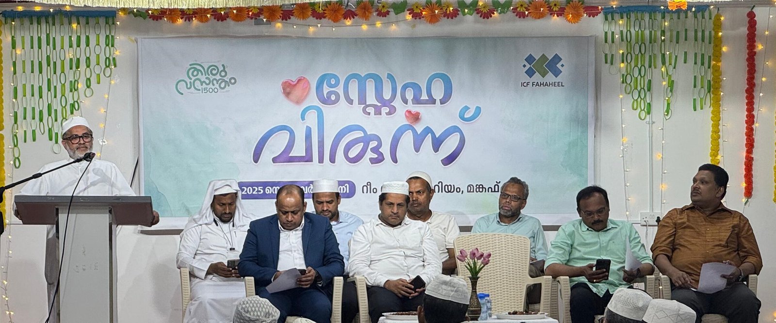 കുവൈറ്റ് സിറ്റി : വിശ്വാസം മുറുകെപ്പിടിച്ച് എല്ലാവർക്കും സാഹോദര്യത്തോടെ ജീവിക്കാനുള്ള സാഹചര്യം നിലനിൽക്കാൻ മനുഷ്യർ പരസ്പരം സഹകരിച്ച് പ്രവർത്തിക്കണമെന്ന് ഐ സി എഫ് ഫഹാഹീൽ റീജിയൻ സംഘടിപ്പിച്ച സ്നേഹവിരുന്ന് അഭിപ്രായപ്പെട്ടു. പരസ്പരം ഉൾക്കൊണ്ട് മതങ്ങൾ തമ്മിലുള്ള ആരോഗ്യകരമായ സംവാദങ്ങൾക്കുള്ള പ്രതലങ്ങൾ സമൂഹത്തിൽ ഉണ്ടാവണം. തിരുവസന്തം@1500 മീലാദ് കാമ്പയിൻ ഭാഗമായി നടന്ന സ്നേഹവിരുന്നിൽ, തിരുനബി (സ്വ) യുടെ അദ്ധ്യാപനങ്ങളുടെ വിവിധ അടരുകൾ പങ്കുവെച്ചു. മങ്കഫിൽ നടന്ന സംഗമം റീജിയൻ പ്രസിഡൻ്റ് ശംസുദ്ധീൻ സഖാഫിയുടെ അധ്യക്ഷതയിൽ നാഷനൽ കാബിനറ്റ് മെമ്പർ ശുക്കൂർ മൗലവി കൈപ്പുറം ഉദ്ഘാടനം ചെയ്തു. അബ്ദുള്ള