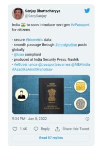 ഇന്ത്യക്കാർക്ക് വൈകാതെ തന്നെ ഇ-പാസ്‌പോർട്ട് ലഭിക്കുമെന്ന് എംഇഎ സെക്രട്ടറി സഞ്ജയ് ഭട്ടാചാര്യ