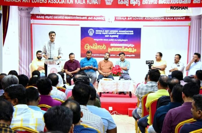 കുവൈത്ത് സിറ്റി : കേരള ആർട്ട് ലവേഴ്സ് അസ്സോസിയേഷൻ കല കുവൈറ്റ് അബ്ബാസിയ മേഖല കമ്മിറ്റിയുടെ ആഭിമുഖ്യത്തിൽ “തെരഞ്ഞെടുപ്പും പ്രവാസികളും ” എന്ന വിഷയത്തിൽ സെമിനാർ സംഘടിപ്പിച്ചു. അബ്ബാസിയ മേഖല പ്രസിഡന്റ് സുരേഷ് കോഴഞ്ചേരിയുടെ അധ്യക്ഷതയിൽ നടന്ന സെമിനാർ ലോക കേരള സഭാംഗം ആർ നാഗനാഥൻ ഉദ്‌ഘാടനം ചെയ്തു.ഹിക്മത്ത് മോഡറേറ്ററായ സെമിനാറിൽ ഹരിരാജ്‌  വിഷയം  അവതരിപ്പിച്ചു.കല കുവൈറ്റ് പ്രസിഡന്റ് അനൂപ് മങ്ങാട്ട് ,നാഷണൽ ലീഗ് പ്രതിനിധി സത്താർ കുന്നിൽ ,മാധ്യമപ്രവർത്തകൻ മുനീർ അഹമ്മദ് ,കേരള അസ്സോസിയേഷൻ പ്രതിനിധി പ്രവീൺ നന്ദിലത്ത് എന്നിവർ സംസാരിച്ചു. അബ്ബാസിയ മേഖല സെക്രട്ടറി നവീൻ സ്വാഗതം ആശംസിച്ച ചടങ്ങിന് മേഖല എക്സിക്യൂട്ടീവ് അംഗം കൃഷ്ണ മേലത്ത് നന്ദി പറഞ്ഞു