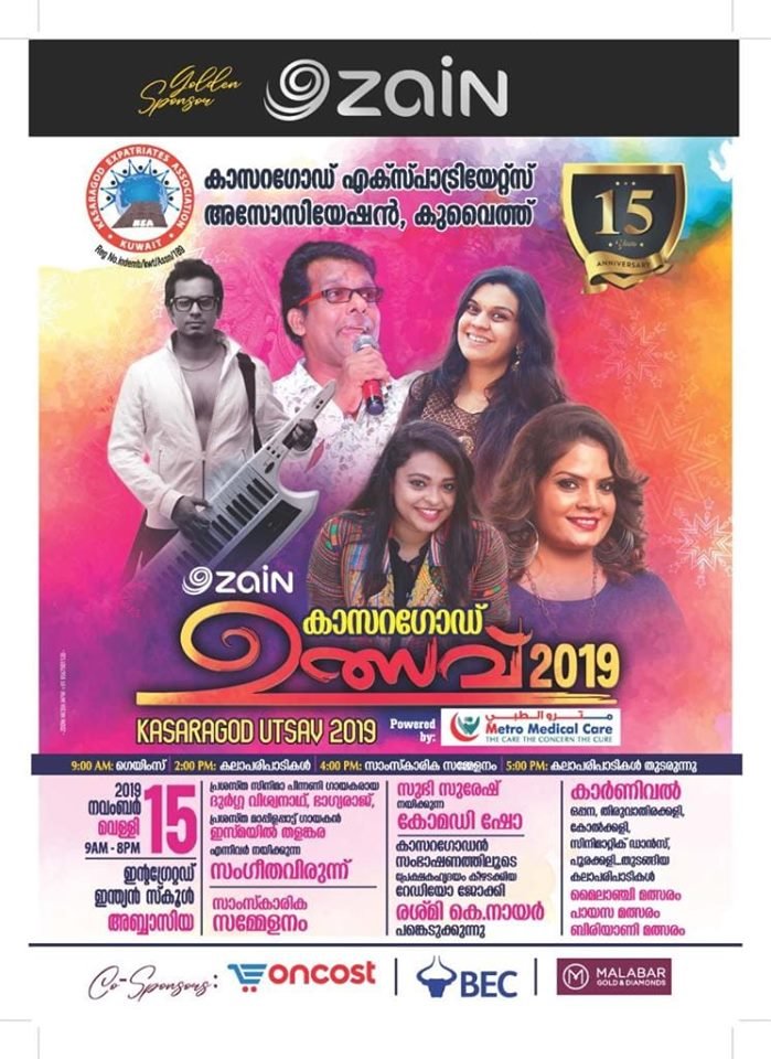 കുവൈത്തിലെ കാസർഗോഡ് ജില്ലാക്കരുടെ പൊതുവേദിയായ കാസർഗോഡ് അസോസിയേഷന്റെ പതിഞ്ചാമത് വാർഷിക സമ്മേളനം നവംബർ 15 രാവിലെ ഒമ്പത് മണി മുതൽ ഇന്റെേഗ്രറ്റഡ് ഇന്ത്യൻ സ്കൂൾ അബ്ബാസിയയിൽ വെച്ച് നടക്കുകയാണ്.ജാതി മത ഭേദമന്യേ കുവൈത്തിലുള്ള കാസർഗോഡ് ജില്ലാക്കാരുടെ കൂട്ടായ്മയാണ് കസര്ഗോഡ് അസോസിയേഷന് . ജില്ലയിലെ സാമുഹിക സാംസകാരിക പ്രവർത്തനങ്ങളെ പ്രോൽസാഹിപ്പിക്കുന്നോടപ്പം അവർക്ക് ആവശ്യമുള്ള ജീവകാരുണ്യ രംഗത്തുള്ള സഹായം നൽകുകയെന്നുള്ളതാണ് ജില്ലാ അസോസിയേഷൻ ചെയ്ത് കൊണ്ടിരിക്കുന്നത്.കഴിഞ്ഞ 15 വർഷമായി നിരവധി സാമൂഹിക സേവന പ്രവർത്തനങ്ങള്ക്ക് അസോസിയേഷന് നേതൃത്വം നല്കിയിട്ടുണ്ട് . കാസർഗോഡ് കേന്ദ്രമാക്കിയുള്ള പാലിയേറ്റീവ് കെയർ സംവിധാനത്തിന് രൂപം നൽകുകയെന്നതാണ് ഈ വർഷത്തെ പരിപാടിയായി ഉൾപ്പെടുത്തിയിരിക്കുന്നത് . കെ.ഇ.എ വാർഷിക ആഘോഷത്തിൽ കേരളത്തിലെ പ്രമുഖരായ കലാകാരന്മാർ അണിനിരക്കും . പ്രശസ്ത പിന്നണി ഗായിക ഐഡിയ സ്റ്റാർ സിംഗർ ഫെയിം ദുർഗ വിശ്വനാഥ്, സംഗീത സംവിധായകനും ഗായകനുമായ ഭാഗ്യരാജ്, പ്രശസ്ത കോമഡി താരം സുബി സുരേഷ് , കാസർഗോഡിന്റെ ഇശല് ഗായകൻ ഇസ്മയീൽ തളങ്കര, കാസർഗോഡ് ഭാഷ ഉച്ചാരണത്തിൽ വെറലായി മാറിയ ദുബൈയിലെ റേഡിയോ ജോക്കി രശ്മി നായർ തുടങ്ങിയവരാണ് പരിപാടിയിൽ സംബന്ധിക്കുന്നത്. അതോടപ്പം ഇന്ത്യൻ എംബസി പ്രതിനിധികളും കുവൈത്തിലെ സാമൂഹിക സാംസ്കാരിക മേഖലയിലെ പ്രമുഖരും സംബന്ധിക്കും. ഗൾഫിലേ പ്രമുഖ ടെലികോം ഓപ്പറേറ്ററായ സൈൻ ടെലികോം മുഖ്യ പ്രായോജകരാകുന്ന പരിപാടിയില് മെട്രോ മെഡിക്കൽ കെയറാണ് കോ സോപ്ൺസർ.