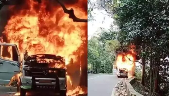 താമരശ്ശരി ചുരത്തില്‍ ഓടിക്കൊണ്ടിരുന്ന ട്രാവലറിന് തീ പിടിച്ചു