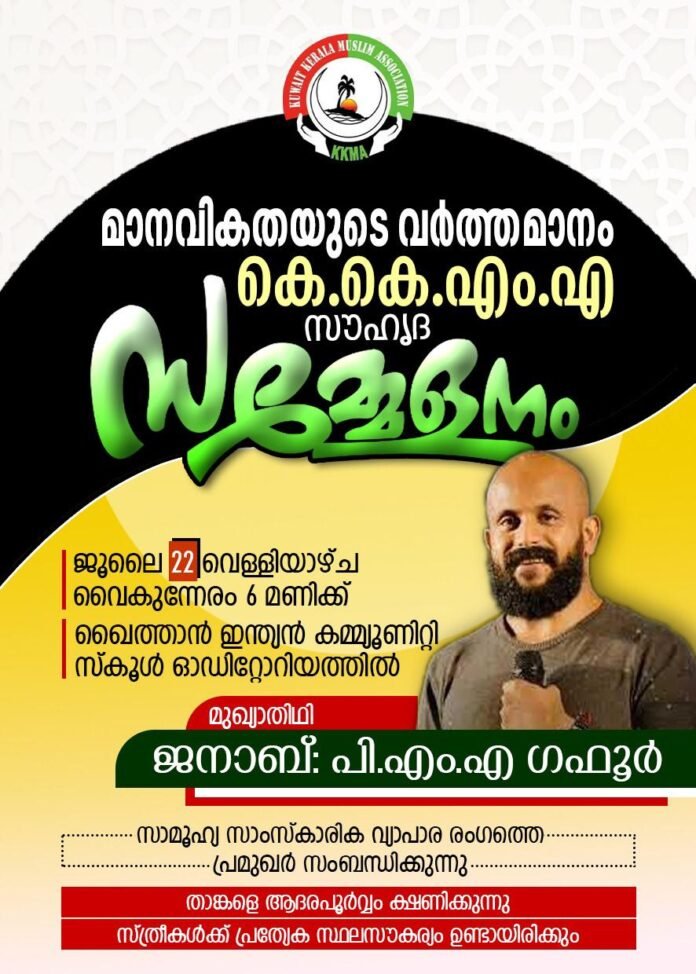 കുവൈറ്റ് കേരള മുസ്ലിം അസോസിയേഷൻ മാനവികതയുടെ വർത്തമാനം എന്ന പ്രമേയത്തെ ആസ്പദമാക്കി സൗഹൃദ