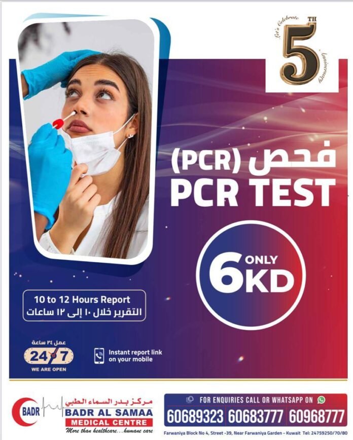 Middle EastKuwait ബദർ അൽ സമാ മെഡിക്കൽ സെൻററിൽ pcr പരിശോധനയ്ക്ക് 6 ദിനാർ By Publisher - February 1, 2022 0 172 Facebook Twitter Google+ Pinterest WhatsApp കുവൈത്ത് സിറ്റി: ബദർ അൽ സമാ മെഡിക്കൽ സെൻററിൽ ഇന്നുമുതൽ pcr പരിശോധനയ്ക്ക് 6 ദിനാർ.
