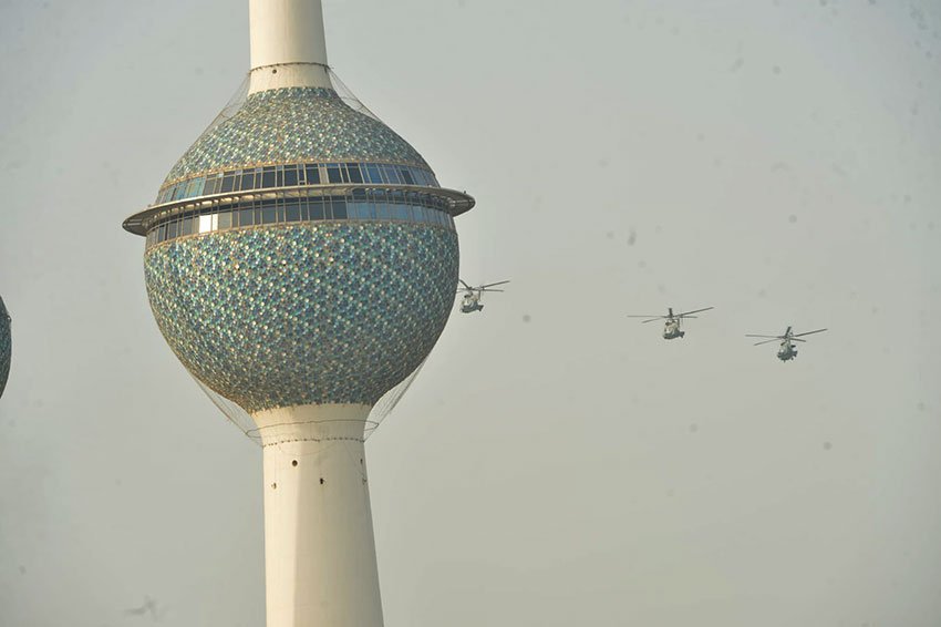 കുവൈത്ത് സിറ്റി: ദേശീയ ദിനാചരണത്തിന്റെ ഭാഗമായി വെള്ളിയാഴ്ച ഉച്ചയ്ക്ക് കുവൈത്ത് ടവേഴ്സിന് സമീപം പ്രതിരോധ മന്ത്രാലയം സൈനിക വിമാനങ്ങളുടെയും പാരാട്രൂപ്പർമാരുടെയും എയർ ഷോ നടന്നു. ഇതിൽ ആഭ്യന്തര മന്ത്രാലയം, ദേശീയ ഗാർഡ്, ജനറൽ ഫയർഫോഴ്സ് തുടങ്ങിയ മറ്റ് സൈനിക മേഖലകളുടെയും അധികാരികളുടെയും പങ്കാളിത്തവും ഉണ്ടായിരുന്നു. കുവൈറ്റ് ടവറിന് സമീപവും ഗൾഫ് തെരുവുകളിലുമായി വൻ ജനക്കൂട്ടത്തെ സാക്ഷിയാക്കിയാണ് സൈനിക വിമാനങ്ങൾ പ്രദർശനം നടത്തിയത്.