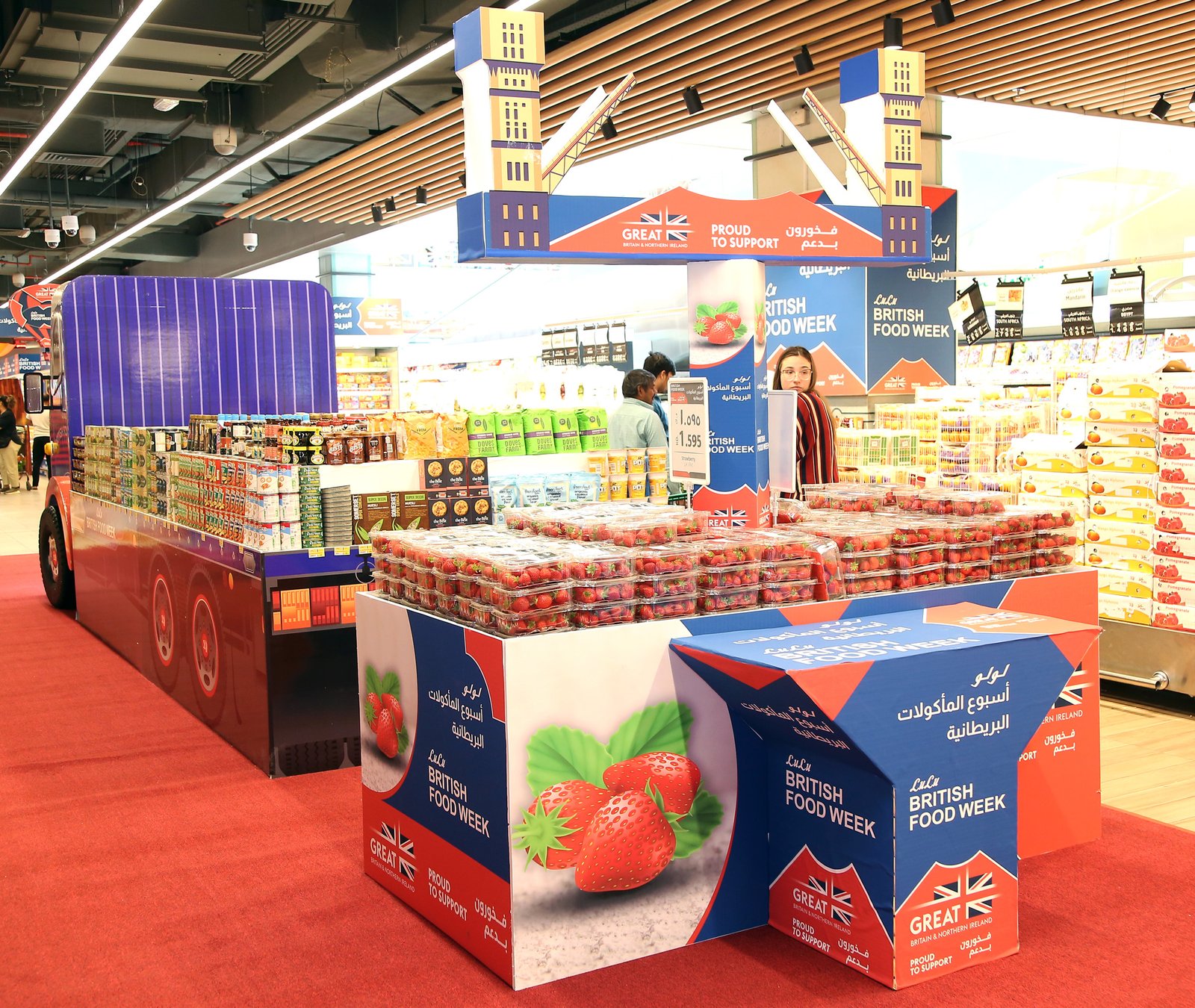 ലുലു ബ്രിട്ടീഷ് ഫുഡ് വീക്കിനെ  ആവേശകരമാക്കി  എല്ലാ ലുലു ഔട്ട്‌ലെറ്റുകളിലും ഫ്ലാഗുകൾ, തോരണങ്ങൾ,  എന്നിവയുൾപ്പെടെ യുകെ തീമിലുള്ള അലങ്കാരങ്ങളോടെയും ചരിത്രസ്മാരകങ്ങളുടെയും ഐക്കണിക് കെട്ടിടങ്ങളുടെയും വലിയ കട്ട് ഔട്ടുകളും ചിത്രങ്ങളും സ്ഥാപിച്ചിട്ടുണ്ട്.