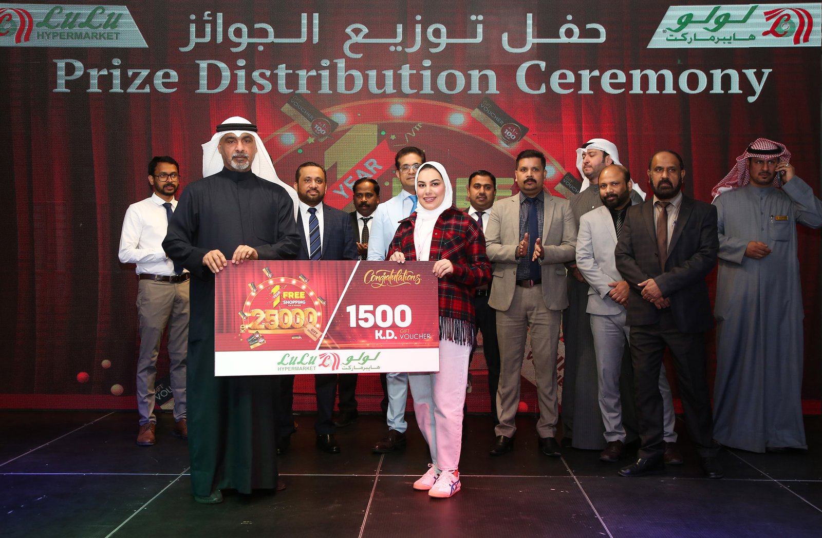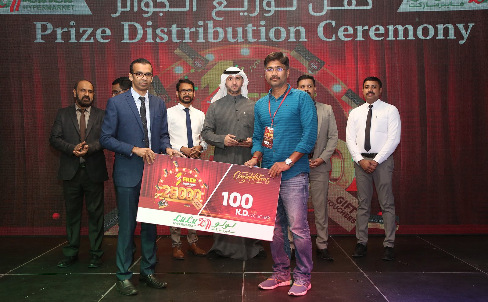 ലുലു ഹൈപ്പർമാർക്കറ്റിലെ ഉന്നത ഉദ്യോഗസ്ഥർ വിജയികൾക്ക് സമ്മാനങ്ങൾ വിതരണം ചെയ്തു. ഒരു വർഷത്തെ സൗജന്യ ഷോപ്പിംഗ് ആസ്വദിക്കാനുള്ള അവിശ്വസനീയമായ അവസരത്തിന് എല്ലാ വിജയികളും ലുലു ഹൈപ്പർമാർക്കറ്റിന് ഹൃദയംഗമമായ നന്ദിയും രേഖപ്പെടുത്തി.