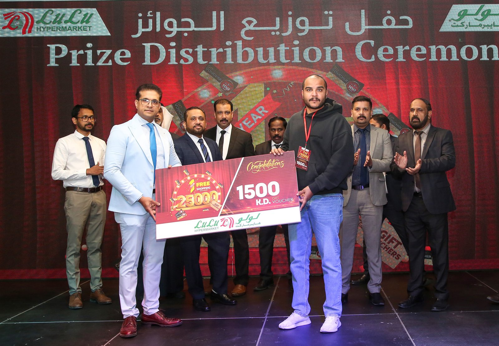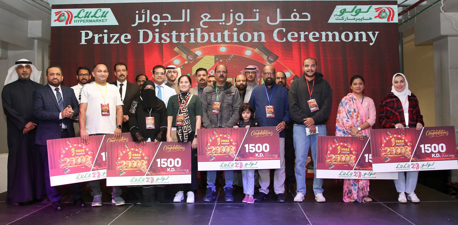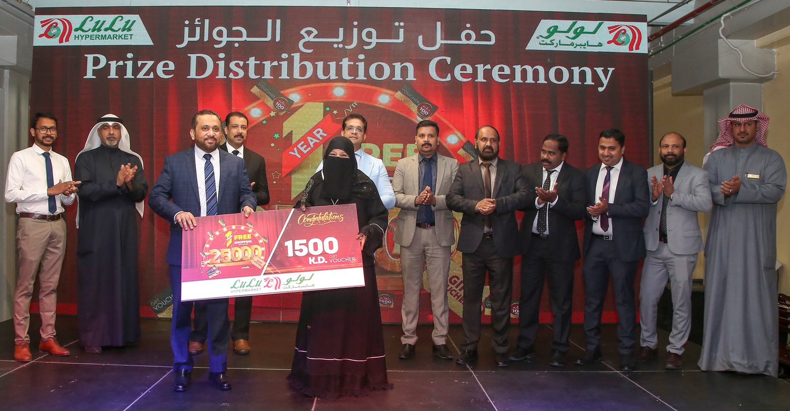 ലുലു ഹൈപ്പർമാർക്കറ്റിലെ ഉന്നത ഉദ്യോഗസ്ഥർ വിജയികൾക്ക് സമ്മാനങ്ങൾ വിതരണം ചെയ്തു. ഒരു വർഷത്തെ സൗജന്യ ഷോപ്പിംഗ് ആസ്വദിക്കാനുള്ള അവിശ്വസനീയമായ അവസരത്തിന് എല്ലാ വിജയികളും ലുലു ഹൈപ്പർമാർക്കറ്റിന് ഹൃദയംഗമമായ നന്ദിയും രേഖപ്പെടുത്തി.