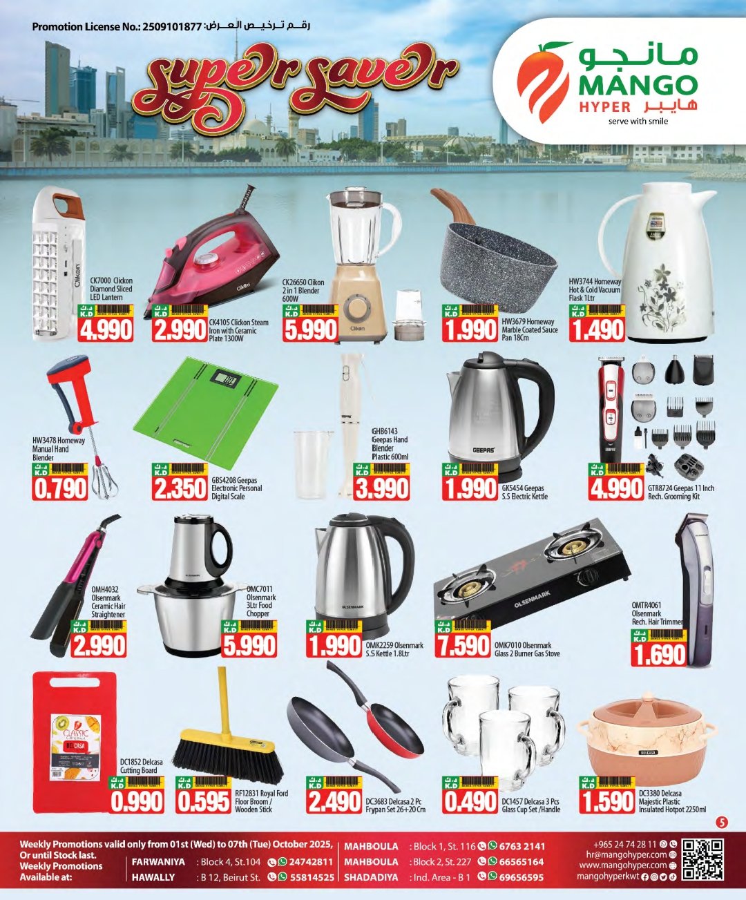 കുവൈറ്റ് സിറ്റി : കുവൈത്തിലെ പ്രമുഖ റീടെയ്ൽ വ്യാപാര സ്ഥാപനമായ മാംഗോ ഹൈപ്പറിൽ എല്ലാ സാധനങ്ങൾക്കും ആകർഷകമായ വിലക്കുറവ് പ്രഖ്യാപിച്ചു. ഒക്ടോബർ 1 മുതൽ 7 വരെയാണ് ഓഫറുകളുടെ കാലാവധി. പലചരക്കുകൾ, പച്ചക്കറികൾ, മാംസങ്ങൾ എന്നിവക്ക് പുറമെ വിവിധ രാജ്യക്കാരായ ഉപഭോക്താക്കളുടെ അഭിരുചിക്കനുസരിച്ചുള്ള ഡ്രെസ്സുകളും മറ്റു ഗാർമെന്റ്സുകളും കൂടാതെ ഇലക്ട്രോണിക്സ് , വീട്ടുപകരങ്ങൾ , മൊബൈൽ , മൊബൈൽ അക്സെസ്സറികൾ , വാച്ചുകൾ , ട്രാവൽ ബാഗുകൾ , ഫാൻസി , കോസ്മെറ്റിക്സ് തുടങ്ങി എല്ലാവിധ സാധനങ്ങളും മാംഗോ ഹൈപ്പറിന്റെ എല്ലാ ഷോറൂമികളിലും ലഭ്യമാണ്. തുണിത്തരങ്ങൾ, ഇലക്ട്രോണിക് എന്നിവക്കും ആകർഷകമായ വിലക്കുറവാണ് പ്രഖ്യാപിച്ചിട്ടുണ്ട്. നിലവിൽ കുവൈത്തിൽ ഹവല്ലി,ജിലീബ്, ഫർവാനിയ,ഹസാവി, മഹബൂല,മഹബൂല 2, ഷുവൈഖ്,ശദാദിയ,1, ശദാദിയ 2, ഹവല്ലി എന്നിവിടങ്ങളിലായി 10 ശാഖകളാണ് മാംഗോ ഹൈപ്പറിനുള്ളത്.
