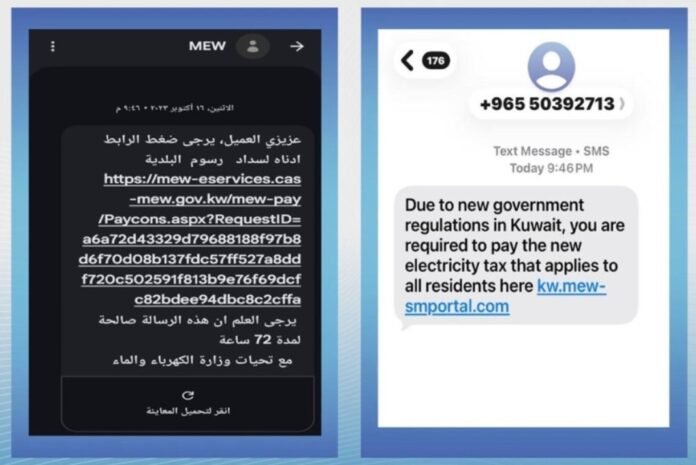 കുവൈത്ത് : വൈദ്യുതി, ജലം, പുനരുപയോഗ ഊർജ്ജ മന്ത്രാലയം മന്ത്രാലയത്തിൽ നിന്നാണെന്ന് വ്യാജമായി അവകാശപ്പെടുകയും വൈദ്യുതി, വെള്ള ബില്ലുകൾ അടയ്ക്കണമെന്ന് ആവശ്യപ്പെടുകയും ചെയ്യുന്ന വ്യാജ ടെക്സ്റ്റ് സന്ദേശങ്ങൾ ഓൺലൈനിൽ പ്രചരിക്കുന്നതിനെക്കുറിച്ച് പൊതുജനങ്ങൾക്ക് മുന്നറിയിപ്പ് നൽകി.