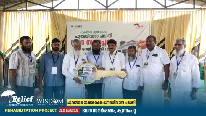 മേപ്പാടി : മുണ്ടക്കൈ, ചൂരൽമല ദുരന്തത്തിൽപ്പെട്ടവർക്ക് വേണ്ടി വിസ്ഡം ഇസ്ലാമിക് ഓർഗനൈസേഷൻ നടപ്പാക്കുന്ന പുനരധിവാസ പദ്ധതികളുടെ ഭാഗമായി നിർമ്മിക്കുന്ന 10 വിടുകളിൽ മേപ്പാടി കുന്നംപറ്റയില് നിര്മ്മിച്ച ആദ്യ വീടിന്റെ നിർമ്മാണം പൂർത്തീകരിച്ചു. മേപ്പാടിയിൽ നടന്ന ചടങ്ങിൽ വിസ്ഡം ഇസ്ലാമിക് ഓർഗനൈസേഷൻ സംസ്ഥാന പ്രസിഡണ്ട് പി.എൻ അബ്ദുൽ ലത്തീഫ് മദനി ടി. സിദ്ധീഖ് എം.എൽ.എക്ക് താക്കോൽ കൈമാറി.