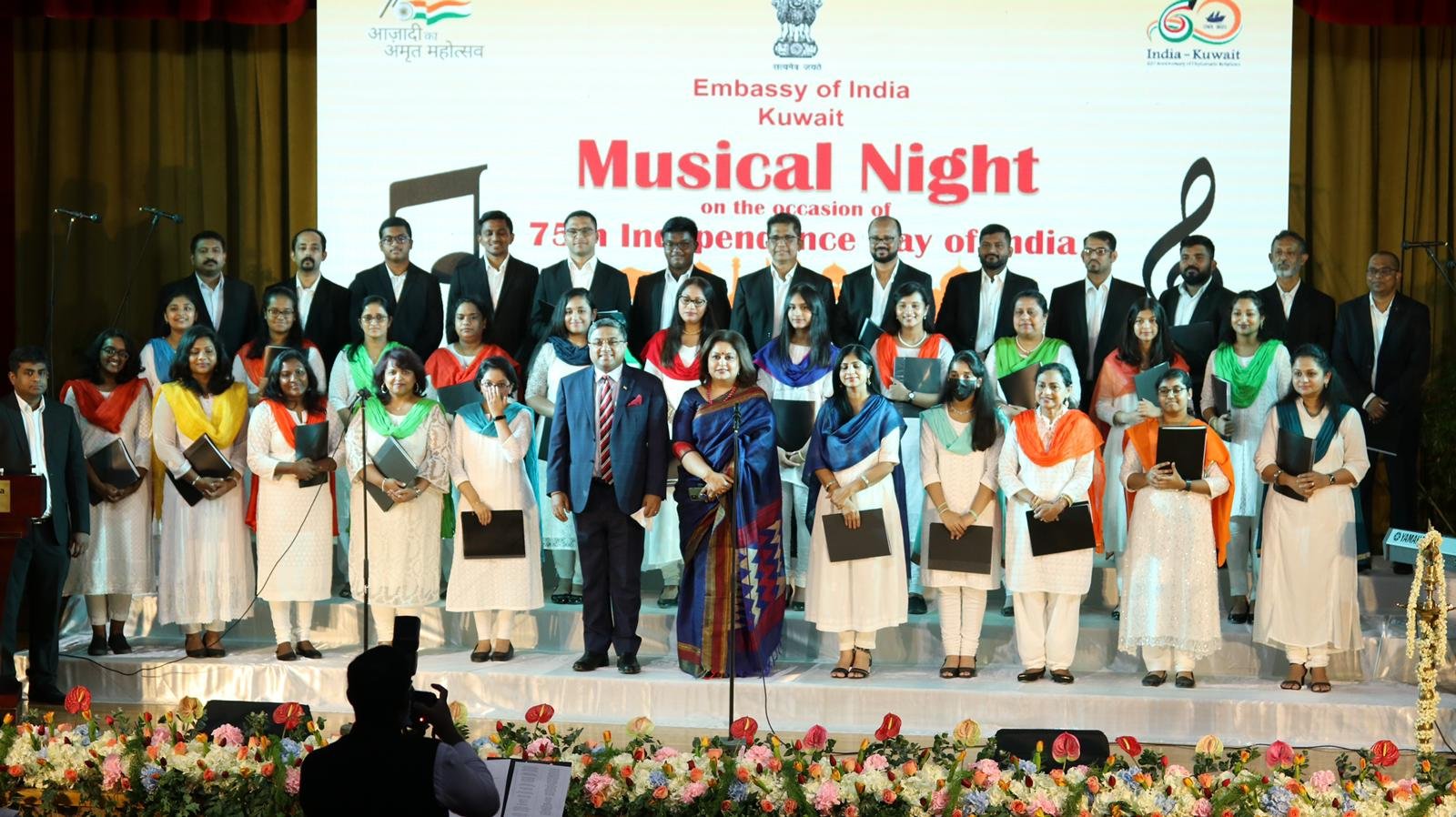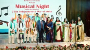 കുവൈറ്റ്: ഇന്ത്യയുടെ 75-)മത് സ്വാതന്ത്രദിനം ആഘോഷമാക്കി കുവൈത്തിലെ ഇന്ത്യൻ എംബസി. രാവിലെ എട്ടുമണി മുതൽ കോവിഡ് സുരക്ഷാ മാനദണ്ഡങ്ങൾ പാലിച്ചു കൊണ്ട് ആഘോഷ പരിപാടികൾ ആരംഭിച്ചു. ആസാദി കാ അമൃത മഹോത്സവ് ആഘോഷങ്ങൾക്ക് മാറ്റുകൂട്ടുന്നതായിരുന്നു എംബസിയിൽ സംഘടിപ്പിച്ച ആകർഷകമായ സംഗീത സായാഹ്നം. ഓഗസ്റ്റ് 15 -ന് വൈകുന്നേരം നടന്ന സംഗീത വിരുന്ന് എംബസിയുടെ സോഷ്യൽ മീഡിയ ഹാൻഡിലുകളിലൂടെ