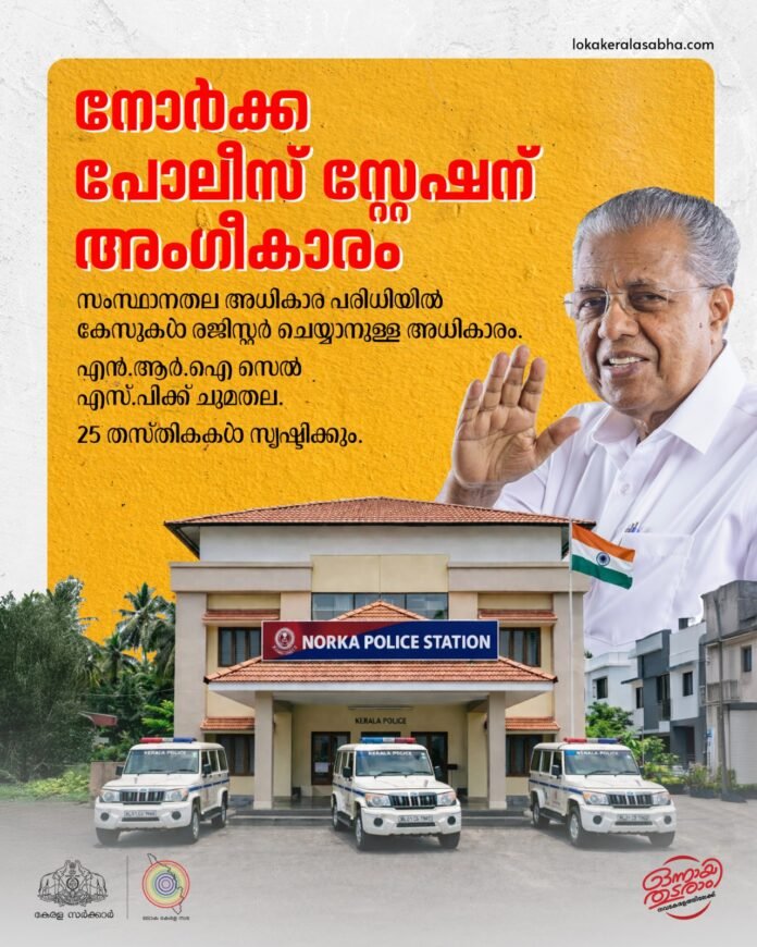 തിരുവനന്തപുരം : സംസ്ഥാന പോലീസ് ആസ്ഥാനത്ത് പുതിയതായി നോർക്ക പോലീസ് സ്റ്റേഷൻ ആരംഭിക്കും. ലോകമൊട്ടാകെ ഏകദേശം മൂന്നരദശലക്ഷം പ്രവാസികളുണ്ടെന്നാണ് കണക്ക്. വിദേശത്ത് ജീവിക്കുമ്പോള് സങ്കീര്ണ്ണമായ നിയമ-സാമ്പത്തിക-സുരക്ഷാ പ്രശ്നങ്ങള് ഇവര് നേരിടുന്നുണ്ട് ഓണ്ലൈന് പ്ലാറ്റുഫോമുകള് വഴിയുള്ള അനിയന്ത്രിതമായ തട്ടിപ്പുകള്, സൈബര് നിക്ഷേപ തട്ടിപ്പുകള്, സാമ്പത്തിക കുറ്റകൃത്യങ്ങള്, വ്യാജ ജോലി ഓഫറുകള് എന്നിവയാണ് ഇവയില് ചിലത്.