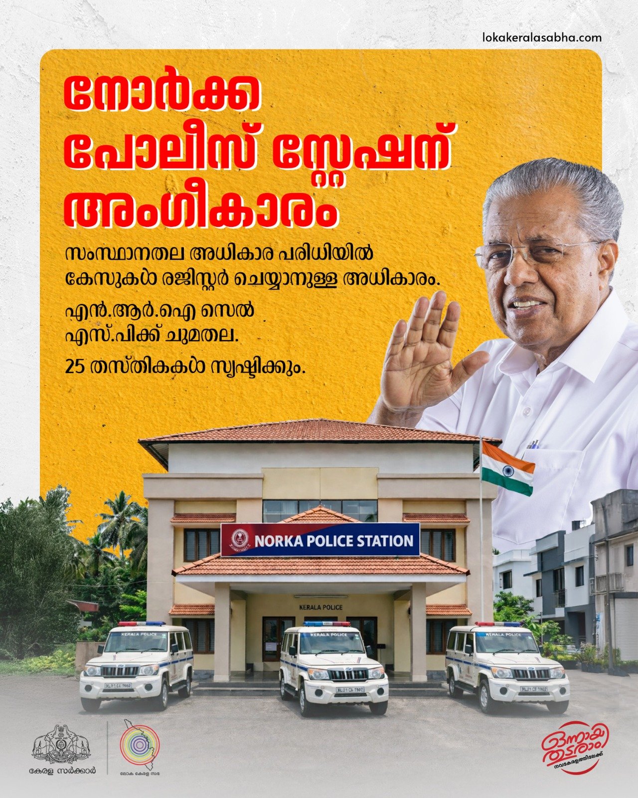 ഇപ്പോള് പോലീസ് ആസ്ഥാനത്ത് പ്രവര്ത്തിക്കുന്ന എന്.ആര്.ഐ സെല് എസ്.പിയുടെ ചുമതലയില് ഒരു എന്.ആര്.ഐ പോലീസ് സ്റ്റേഷന് രൂപീകരിക്കുവാന് സംസ്ഥാന പോലീസ് മേധാവി നല്കിയ നിര്ദ്ദേശമാണ് മന്ത്രിസഭാ യോഗം അംഗീകരിച്ചത്. ഇൻസ്പെക്ടർ – 1, സബ് ഇൻസ്പെക്ടർ – 6, അസിസ്റ്റന്റ് സബ് ഇൻസ്പെക്ടർ – 6, സീനിയർ സിവിൽ പോലീസ് ഓഫീസർ – 5, സിവിൽ പോലീസ് ഓഫീസർ – 7 എന്നിങ്ങനെ 25 തസ്തികകൾ ഇതിനായി സൃഷ്ടിക്കും.