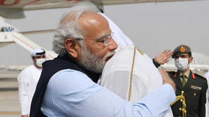 ജർമ്മനിയിൽ നടന്ന ജി 7 ഉച്ചകോടിയിൽ പങ്കെടുത്തതിന് ശേഷം, അബുദാബിയിൽ എത്തിയ ഇന്ത്യൻ പ്രധാനമന്ത്രി നരേന്ദ്രമോദിയെ യു എ ഇ പ്രസിഡന്റ് ഷെയ്ഖ് മുഹമ്മദ് ബിൻ സായിദ് അൽ നഹ്യാൻ സ്വീകരിച്ചു.