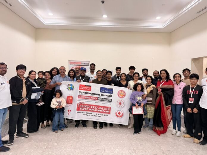 കുവൈറ്റ് സിറ്റി: സാന്ത്വനം കുവൈറ്റ് ബ്ലഡ് ഡോണേഴ്സ് കേരള (BDK) കുവൈറ്റ് ചാപ്റ്ററുമായി സഹകരിച്ച് (മാർച്ച് 12) സംഘടിപ്പിച്ച രക്തദാന ക്യാമ്പ് ശ്രദ്ധേയമായി. അദാൻ ബ്ലഡ് ട്രാൻസ്ഫ്യൂഷൻ സെന്ററിൽ വെച്ചു നടന്ന ക്യാമ്പിൽ കുവൈറ്റിലെ വിവിധ ഭാഗങ്ങളിൽ നിന്നുള്ള ഒട്ടേറെ പ്രവാസികൾ പങ്കുചേർന്നു. ഈ വർഷത്തെ റമദാൻ മാസത്തിടനുബന്ധിച്ചു നടത്തിയ രക്തദാന ക്യാമ്പ് സാന്ത്വനം കുവൈറ്റ് ഉപദേശക സമിതിയംഗം ഡോ. അമീർ അഹമ്മദ് ഉദ്ഘാടനം ചെയ്തു.രക്തദാന ക്യാമ്പിന്റെ കൺവീനർ ബിവിൻ തോമസ് സ്വാഗതം ആശംസിച്ച ഔദ്യോഗിക ചടങ്ങിൽ ബി.ഡി.കെ. കുവൈറ്റ് ജനറൽ കൺവീനർ നിമിഷ് കാവലം അധ്യക്ഷത വഹിച്ചു. സാന്ത്വനം കുവൈറ്റ് ജനറൽ സെക്രട്ടറി അനിൽ കുമാർ കെ.എസ്., സാന്ത്വനം കുവൈറ്റ് വൈസ് പ്രസിഡന്റ് മാത്യൂസ് മാമൻ, ബ്ലഡ് ഡൊണേഴ്സ് കേരള (BDK) കുവൈറ്റ് ചാപ്റ്റർ പ്രതിനിധി രാജൻ തോട്ടത്തിൽ, തുടങ്ങിയവർ ആശംസകൾ അറിയിച്ചു സംസാരിച്ചു.BDK പ്രതിനിധി നളിനാക്ഷൻ ചടങ്ങിൽ പങ്കെടുത്തവർക്ക് നന്ദി പ്രകാശിപ്പിച്ചു.
