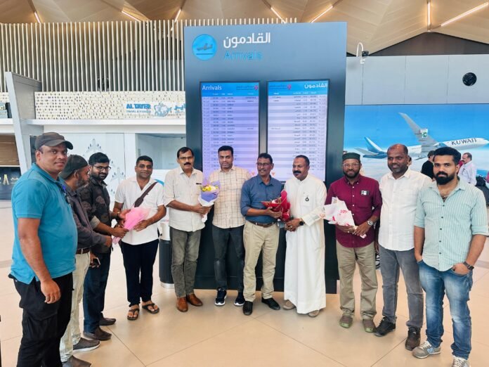 കുവൈത്ത് സിറ്റി: വെള്ളിയാഴ്ച വൈകുന്നേരം അബ്ബാസിയ ഇന്റഗ്രേറ്റഡ് ഇന്ത്യൻ സ്കൂൾ ഓപ്പൺ ഓഡിറ്റോറിയത്തിൽ വെച്ച് നടക്കുന്ന കുവൈത്ത് കെഎംസിസി തൃശ്ശൂർ ജില്ലാ സമ്മേളനത്തിൽ പങ്കെടുക്കാനെത്തിയ മുസ്ലിം ലീഗ് നേതാക്കൾക്ക് കുവൈത്ത് എയർപോർട്ടിൽ ഉജ്ജ്വല സ്വീകരണം നൽകി.മുസ്ലിം ലീഗ് സംസ്ഥാന വൈസ് പ്രസിഡണ്ട് സി.എച്ച്. റഷീദ്,തൃശൂർ ജില്ലാ ജനറൽ സെക്രട്ടറി പി.എം.അമീർ,മുസ്ലിം യൂത്ത് ലീഗ് ദേശീയ ഒർഗനൈസിംഗ് സെക്രട്ടറി അഡ്വ: ഷിബു മീരാൻ,പ്രശസ്ത സൂഫി ഗായകൻ അഷ്‌റഫ് പാലപ്പെട്ടി തുടങ്ങിയരെ ജില്ലാ മണ്ഡലം നേതാക്കളായ ഹബീബ് മുറ്റിച്ചൂർ,മുഹമ്മദ് നാസ്സർ തളി,അഷ്‌റഫ് കൊടുങ്ങല്ലൂർ,കബീർ ഗുരുവായൂർ,നിഷാദ് മണലൂർ,അബ്ദുൽ റസാഖ് കുന്നംകുളം,ശറഫുദ്ധീൻ നാട്ടിക തുടങ്ങിയവരുടെ നേതൃത്വത്തിൽ സ്വീകരിച്ചു.